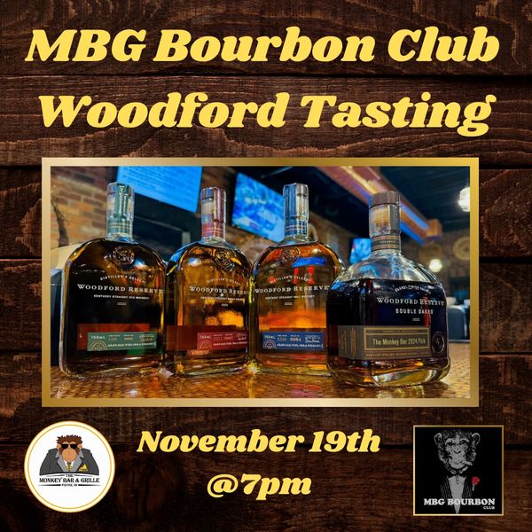 Join us for an evening of bourbon exploration as we host a Woodford Bourbon Tasting on November 19th at 7 PM. This guided experience will feature four 0.75 ounce pours from Woodford’s malt, wheat and rye bourbons, along with our exclusive MBG Barrel Pick Woodford Double Oaked! We will start the evening with a perfectly paired fall-inspired welcome cocktail and some delicious “small bites” by our MBG Chefs, Jose and Zac.